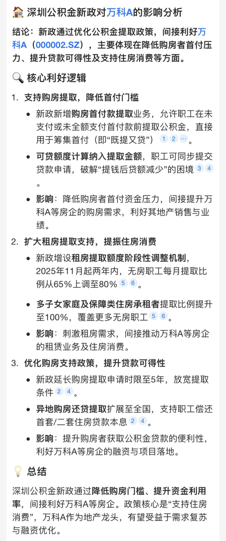 $万 科A(SZ000002)$ 深圳公积金新政支撑购房提取,降低首付门槛,加上后续出台贴息,房地产必定企稳回升。