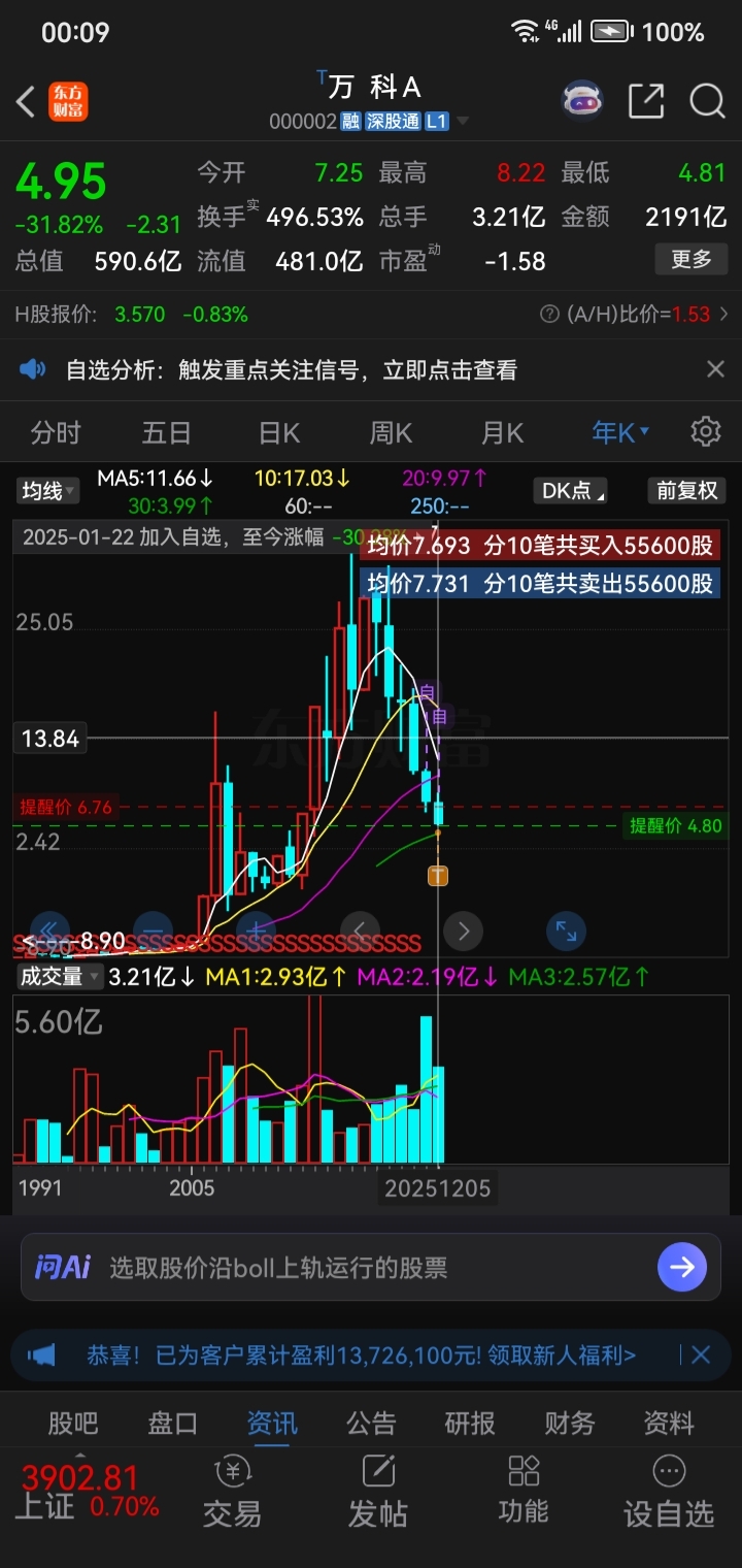 $万 科A(SZ000002)$ 今年也帮我赚过钱,真不希望你就这样倒下,但底在何方呢?