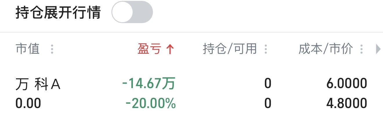买了不到一个月亏了20%几,认亏出局,世界大坏人王石,吃相太难看