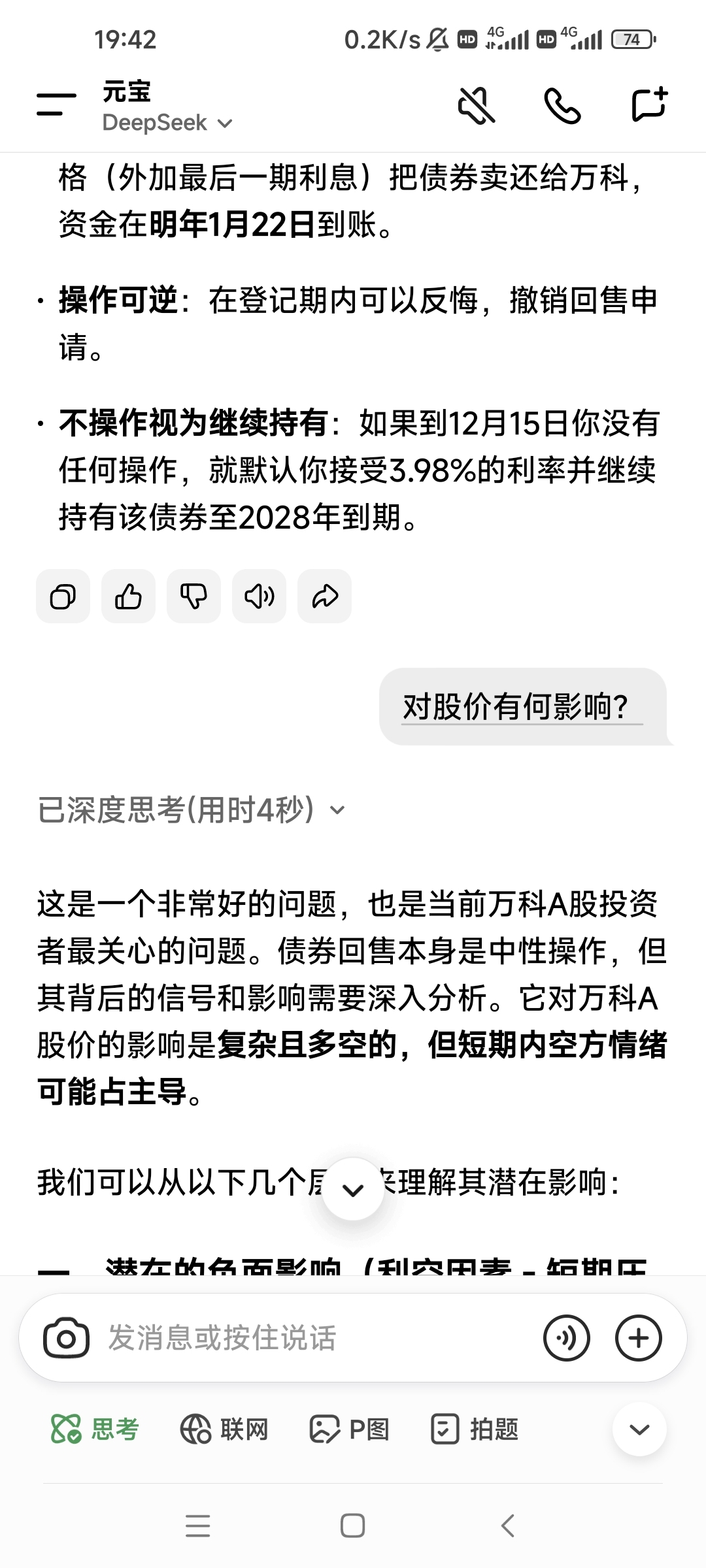 $万 科A(SZ000002)$ 根据公告,AI的理解,短期利空,明天还是下跌