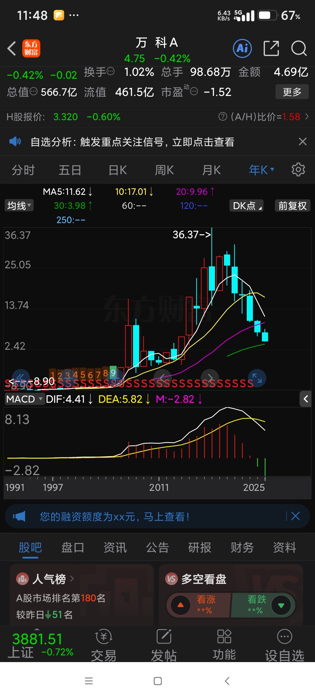 $万 科A(SZ000002)$ 连跌六年,今年每个月都是跌,这里面还有散户吗?