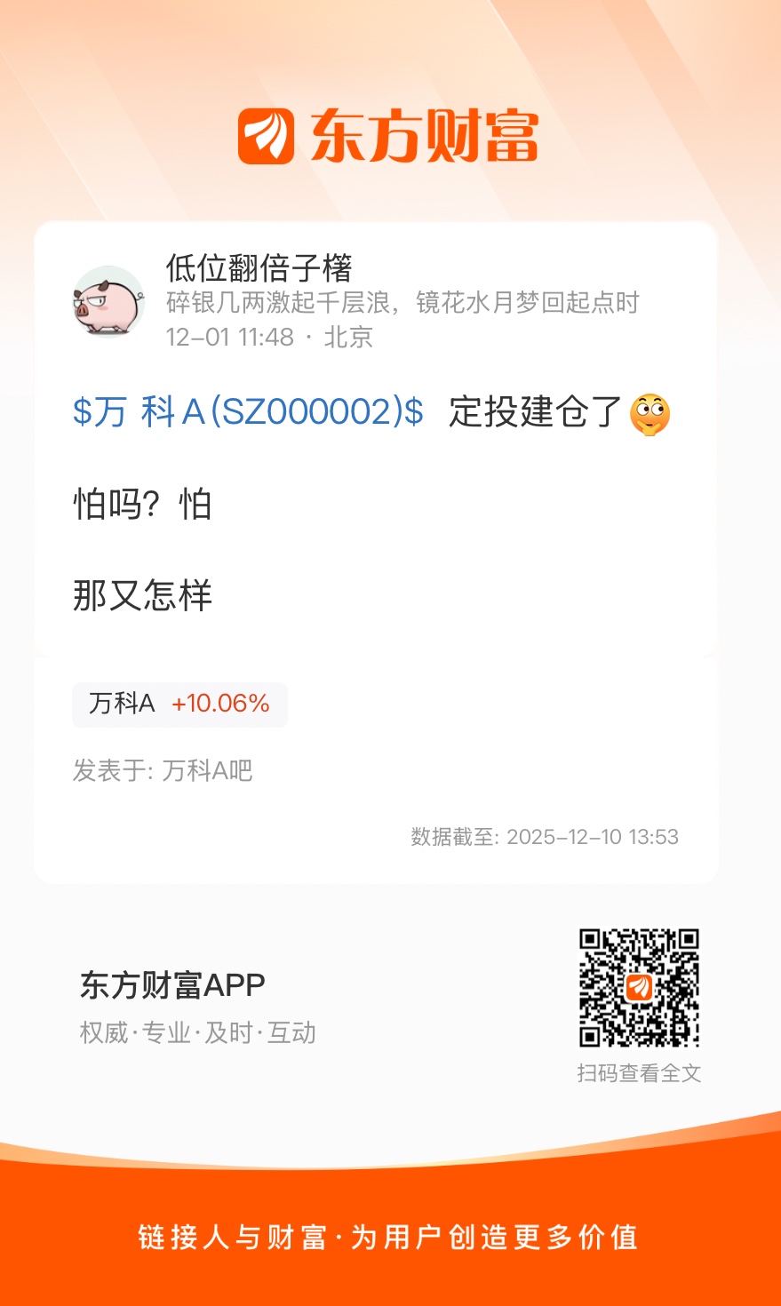 $万 科A(SZ000002)$  定投建仓了
