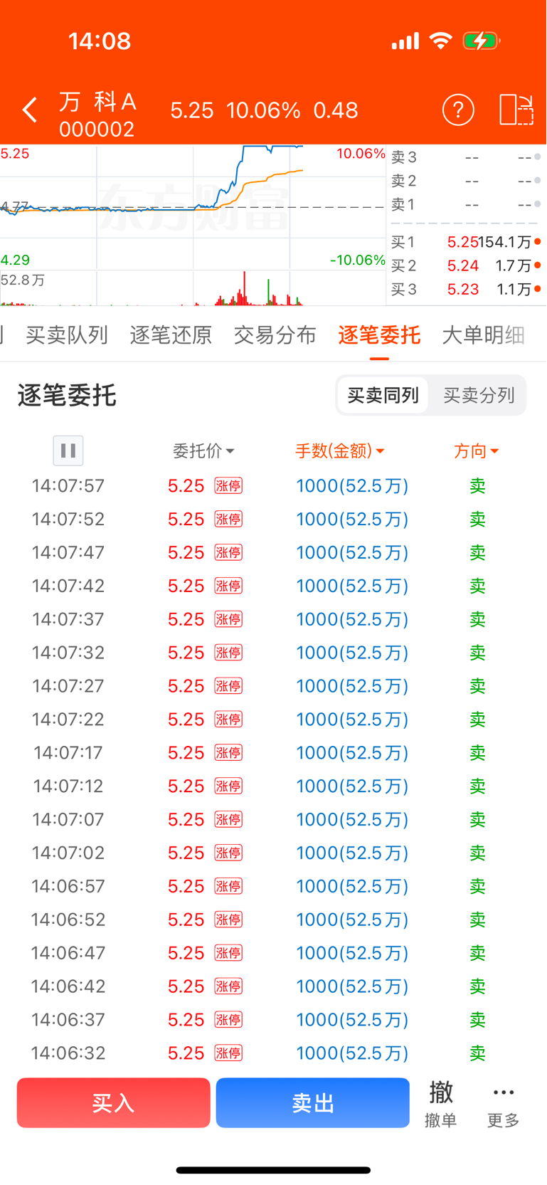 每5秒卖1000手。牛逼!