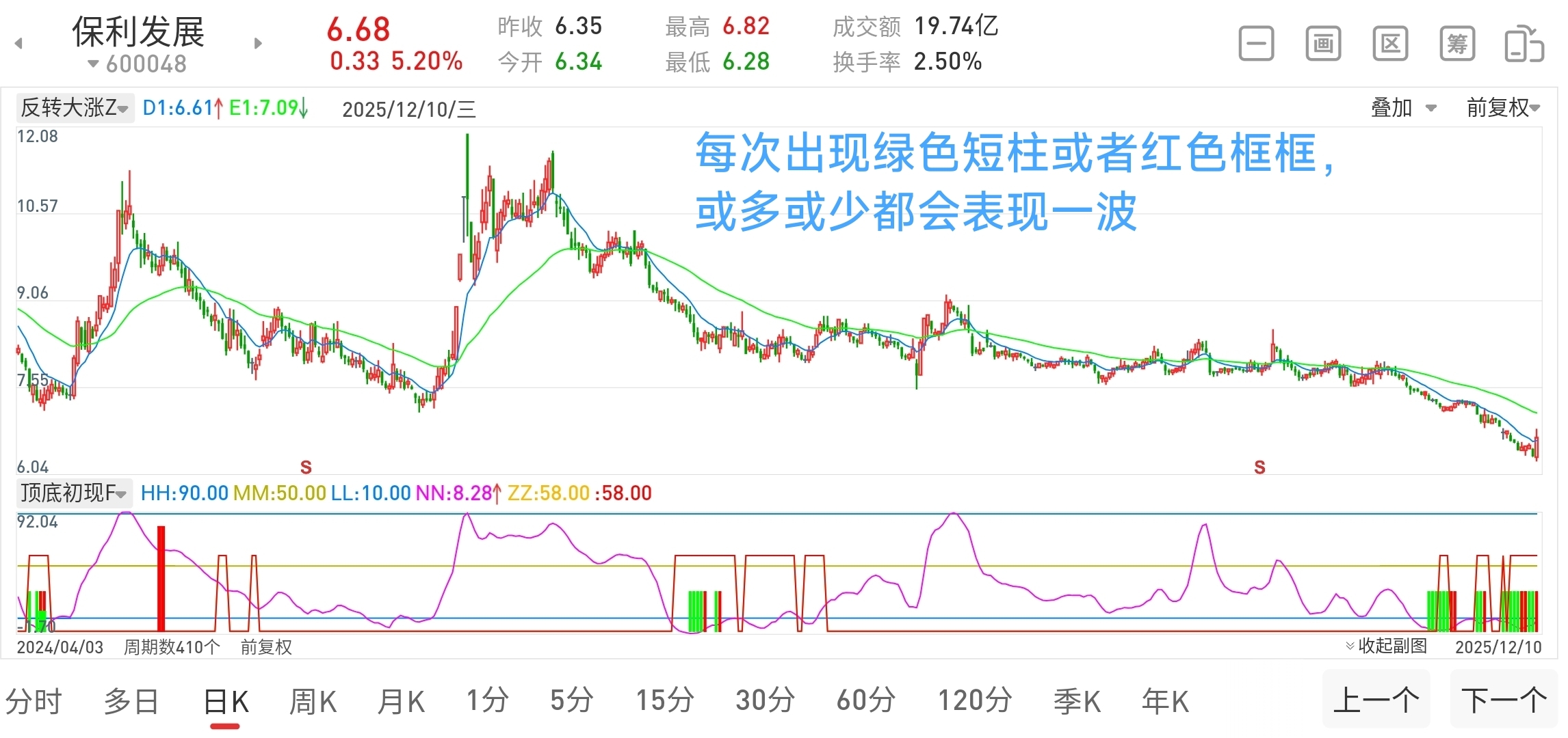 每次出现绿色短柱或者红色框框,或多或少都会表现一波,昨天晚上明确发帖,这里就是底