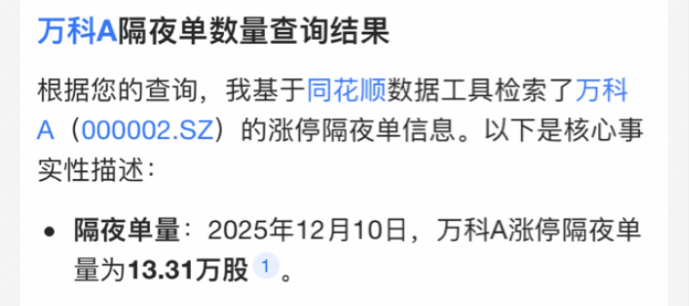 $万 科A(SZ000002)$ 涨停隔夜单13.31万股,是多还是少。