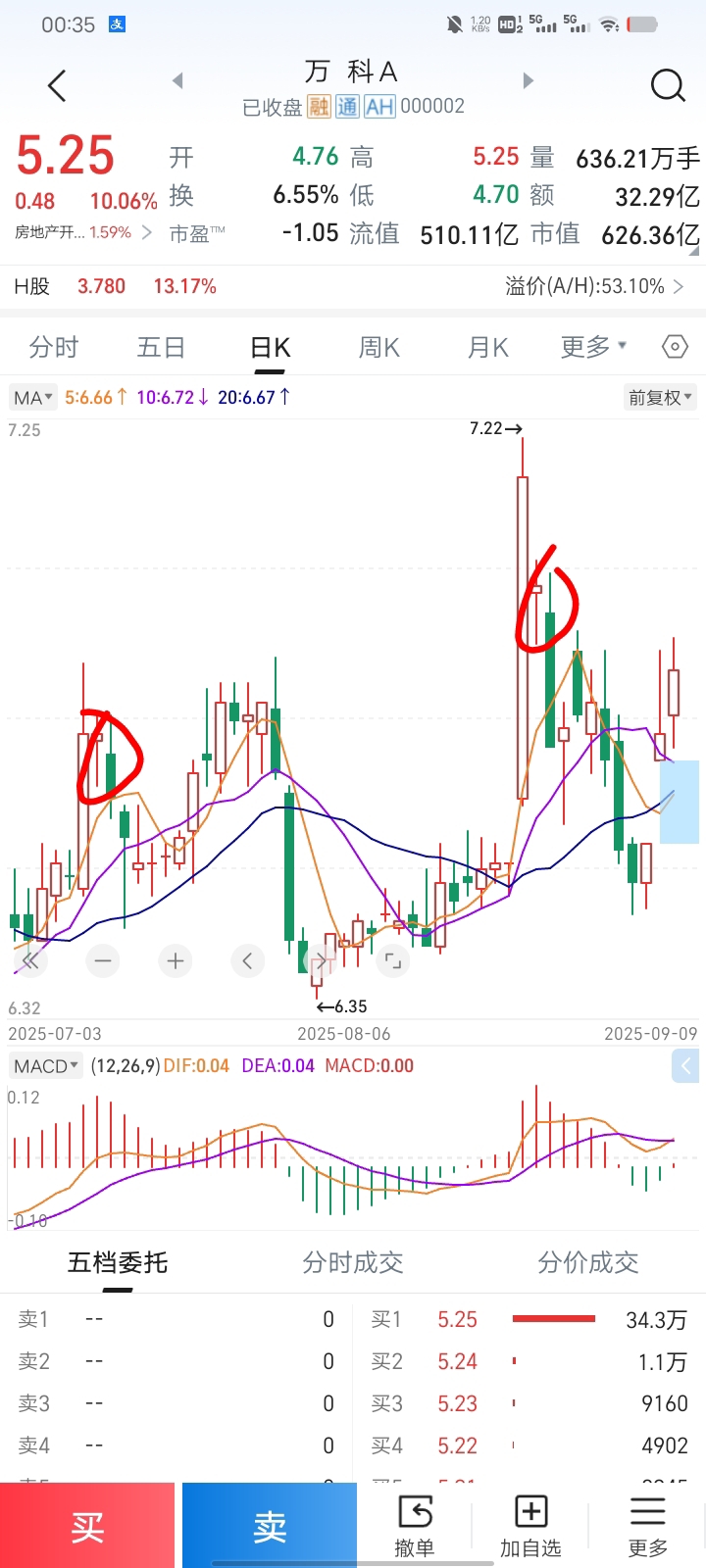 $万 科A(SZ000002)$ 地产大概率一日游行情,明天的走势请参考