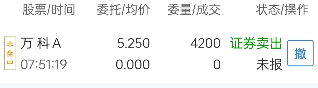 $万 科A(SZ000002)$ $万 科A(000002)$ 不管你今天高开多少我都要跑,晚一点都跑不了。