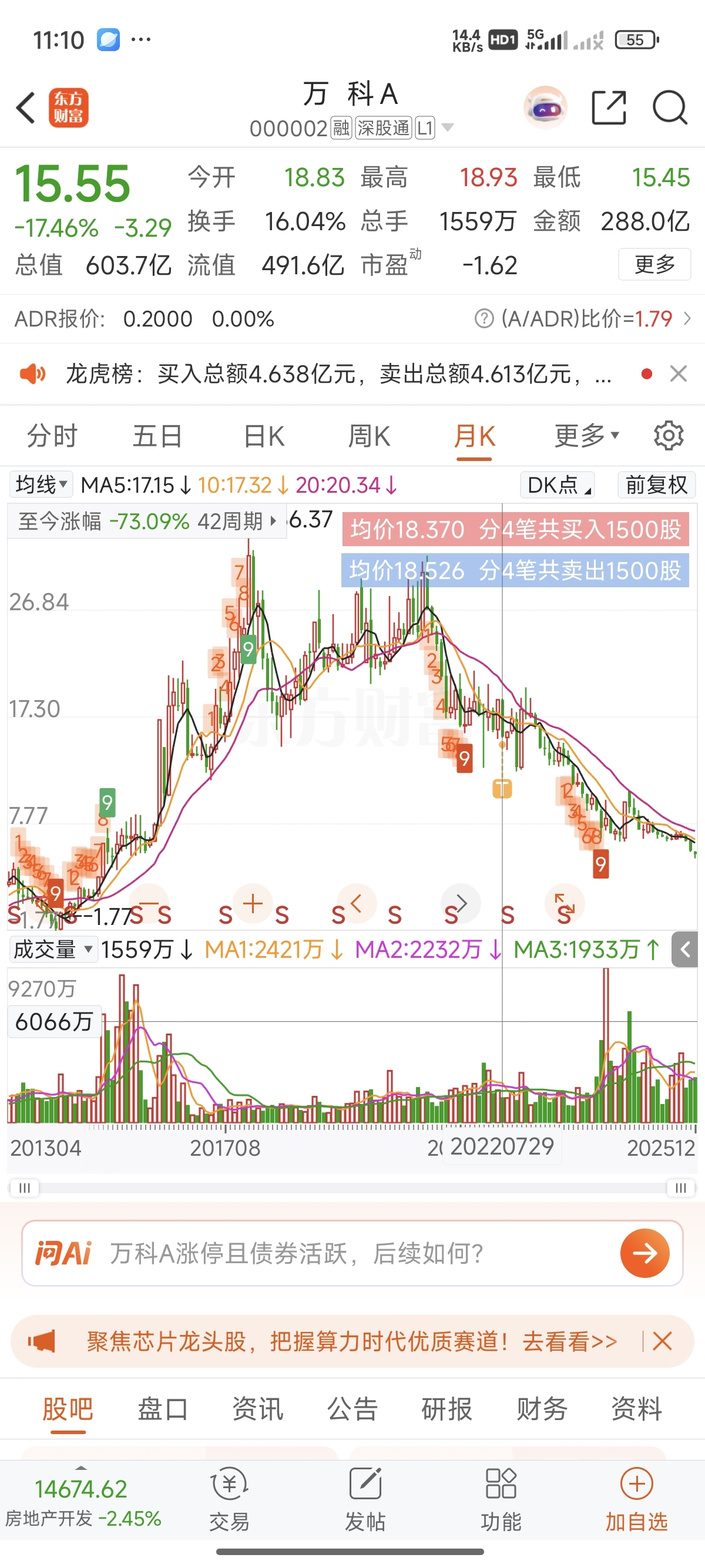 $万 科A(SZ000002)$ 幸亏跑的早,不然人都麻了