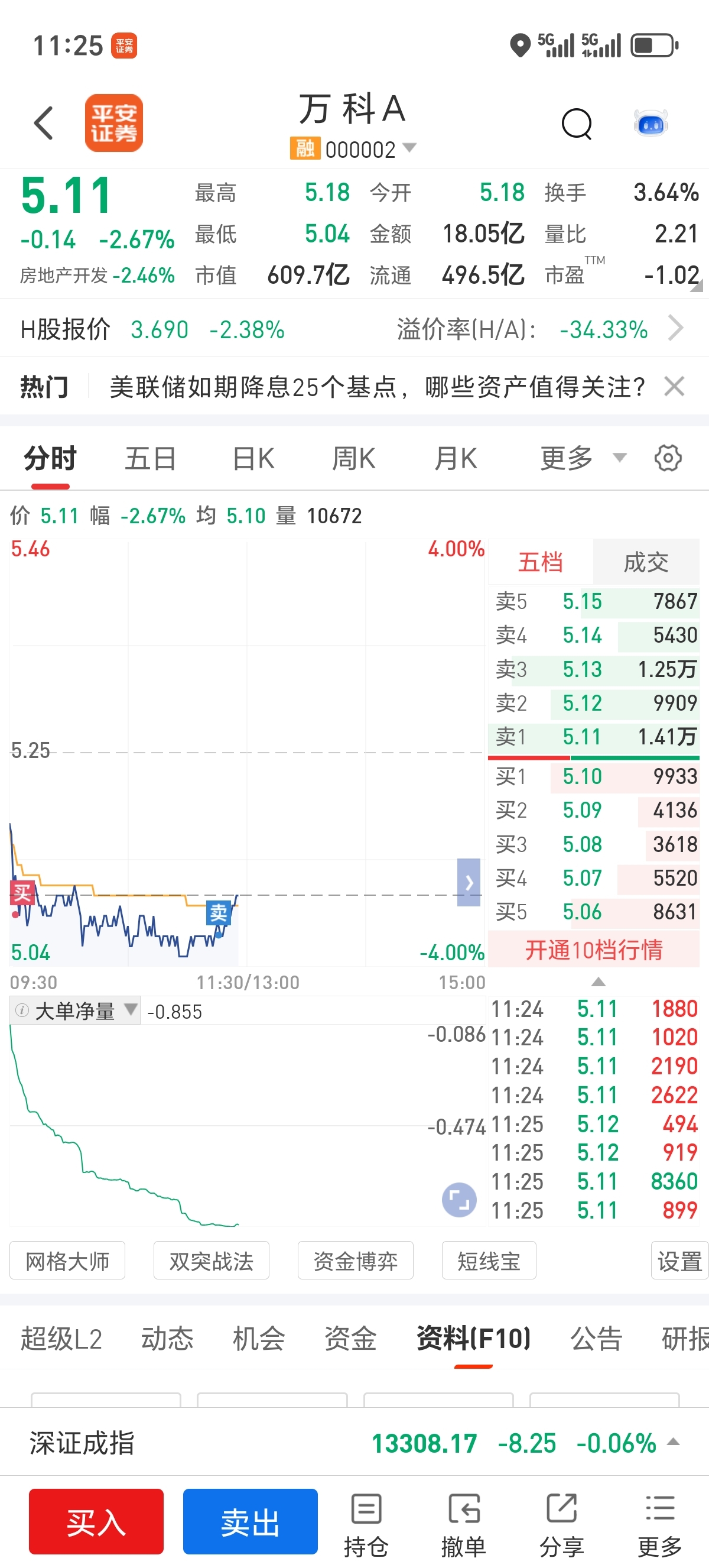 $万 科A(SZ000002)$ 太恶心了 510买的 507卖的他就立马涨到512。不卖就一直在507