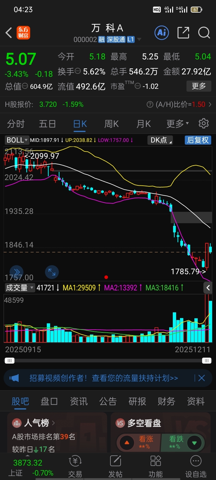 $万 科A(SZ000002)$ 后复权价近二千元,不便宜