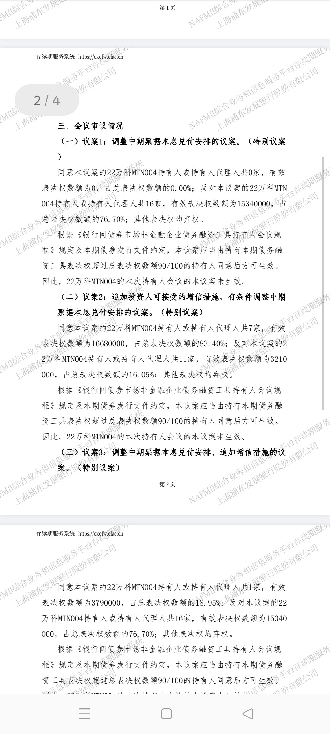 $万 科A(SZ000002)$ 万科此次针对“22万科MTN004”债券的展期提案,在本次正式持有人会议上确实未能获得法定通过,宣告了本次展期努力的失败。这标志着该笔债券的兑付进入了关键且敏感的时期,发行人和持有人之间的博弈可能将继续或升级。后续进展需密切关注万科官方及银行间市场公告。