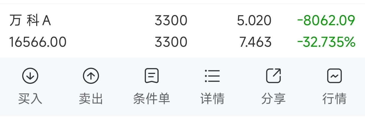 $万 科A(SZ000002)$ 反正买的少,清零就清零,我但要看这场戏最后怎么收场,大股东比我投的多的多,他不割肉我也不可能割肉。