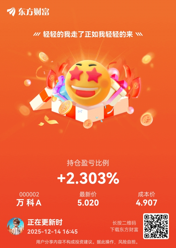 $万 科A(SZ000002)$ 我还留有2手站岗。怎么办啊。这可是我全部家当,养家糊口就靠你了。支持万科涨停板。