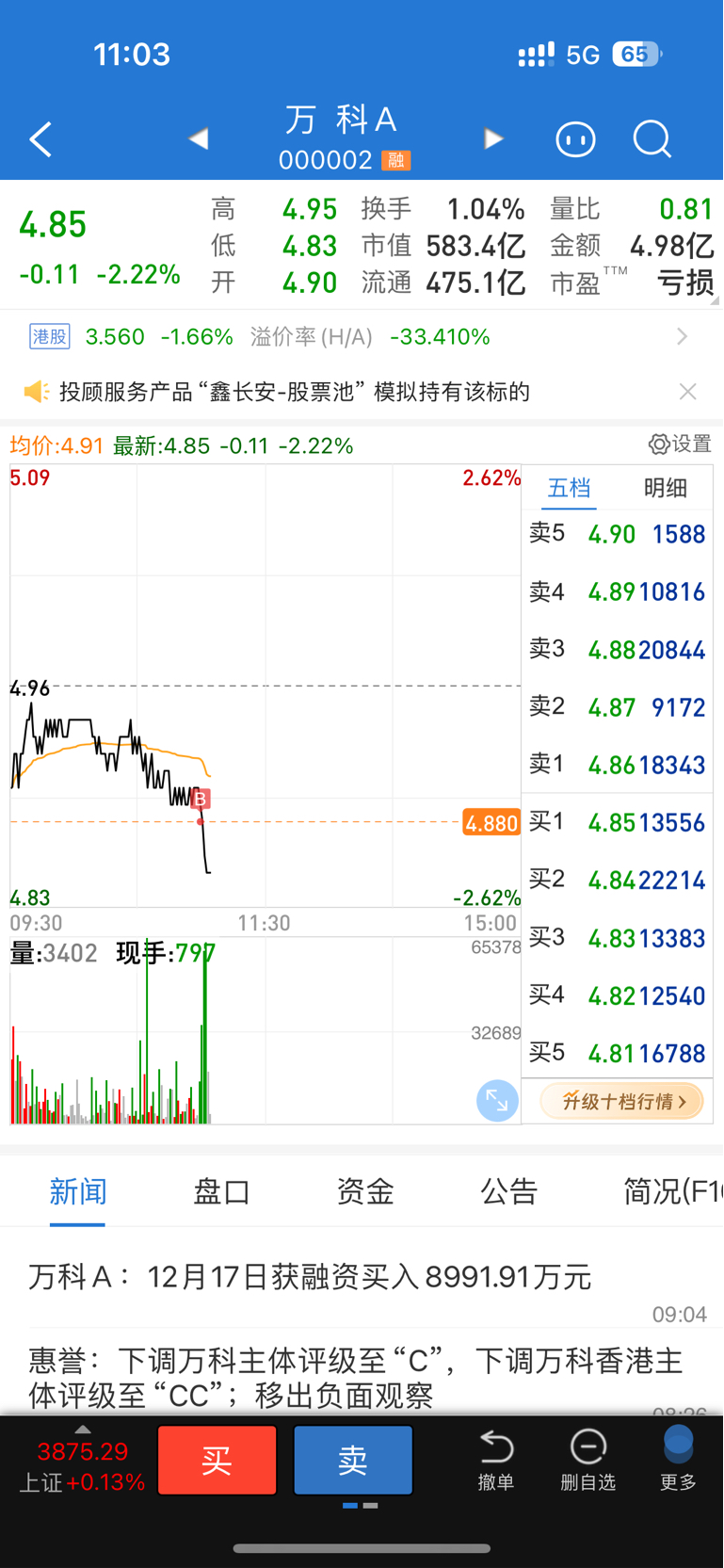 $万 科A(SZ000002)$ 这他女马是盯着我呀