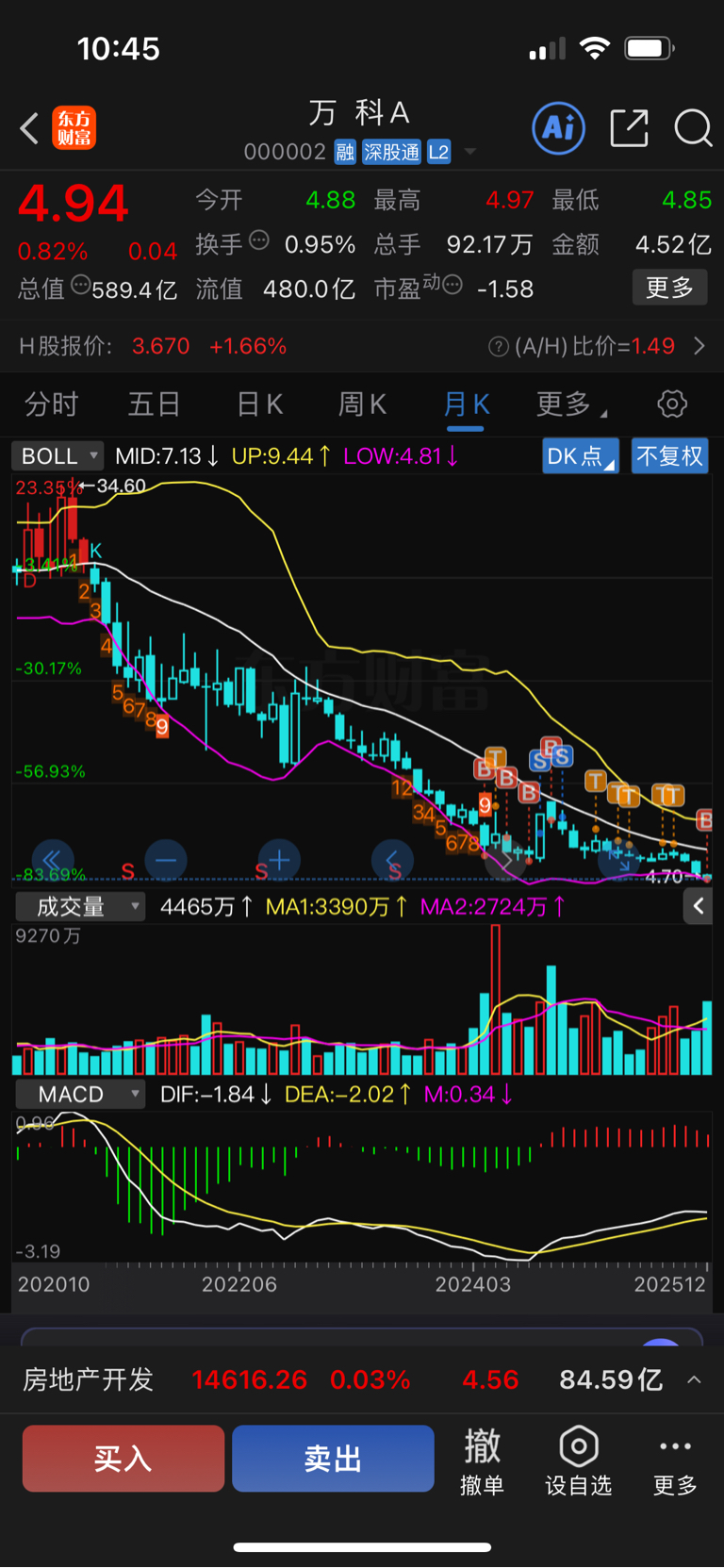 同志们我又回来了,万科是我炒股以来唯一一个没有亏损的股票,希望这次也一样,大家一