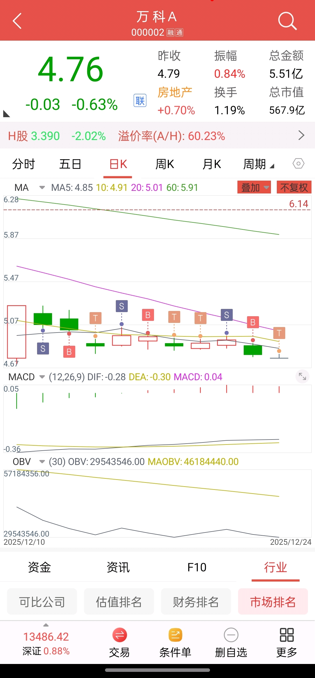 $万 科A(SZ000002)$ 万科创新低也赚钱,每天做T就是T不飞