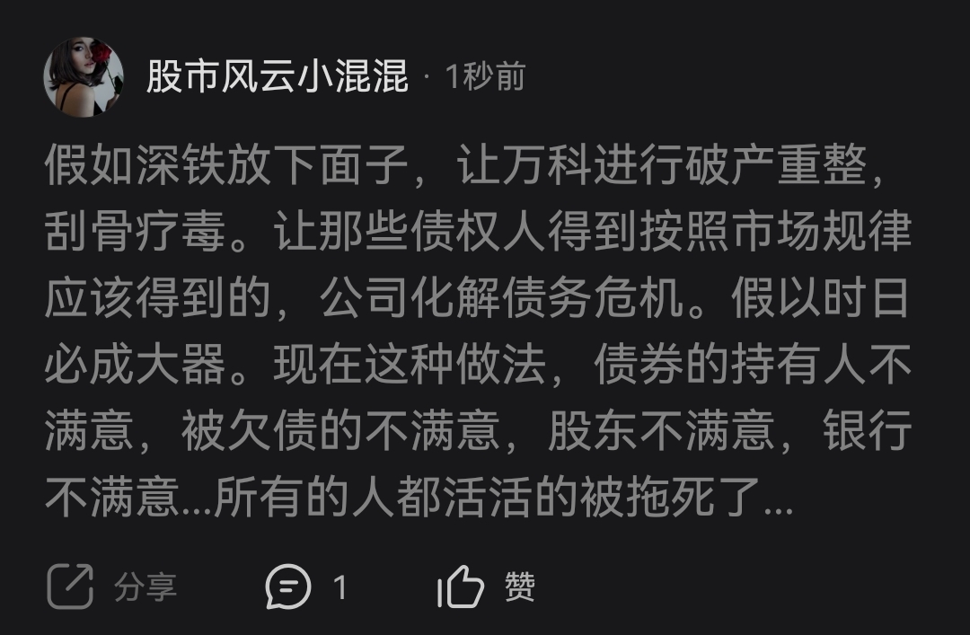 $万 科A(SZ000002)$ 帖子居然被删了。
