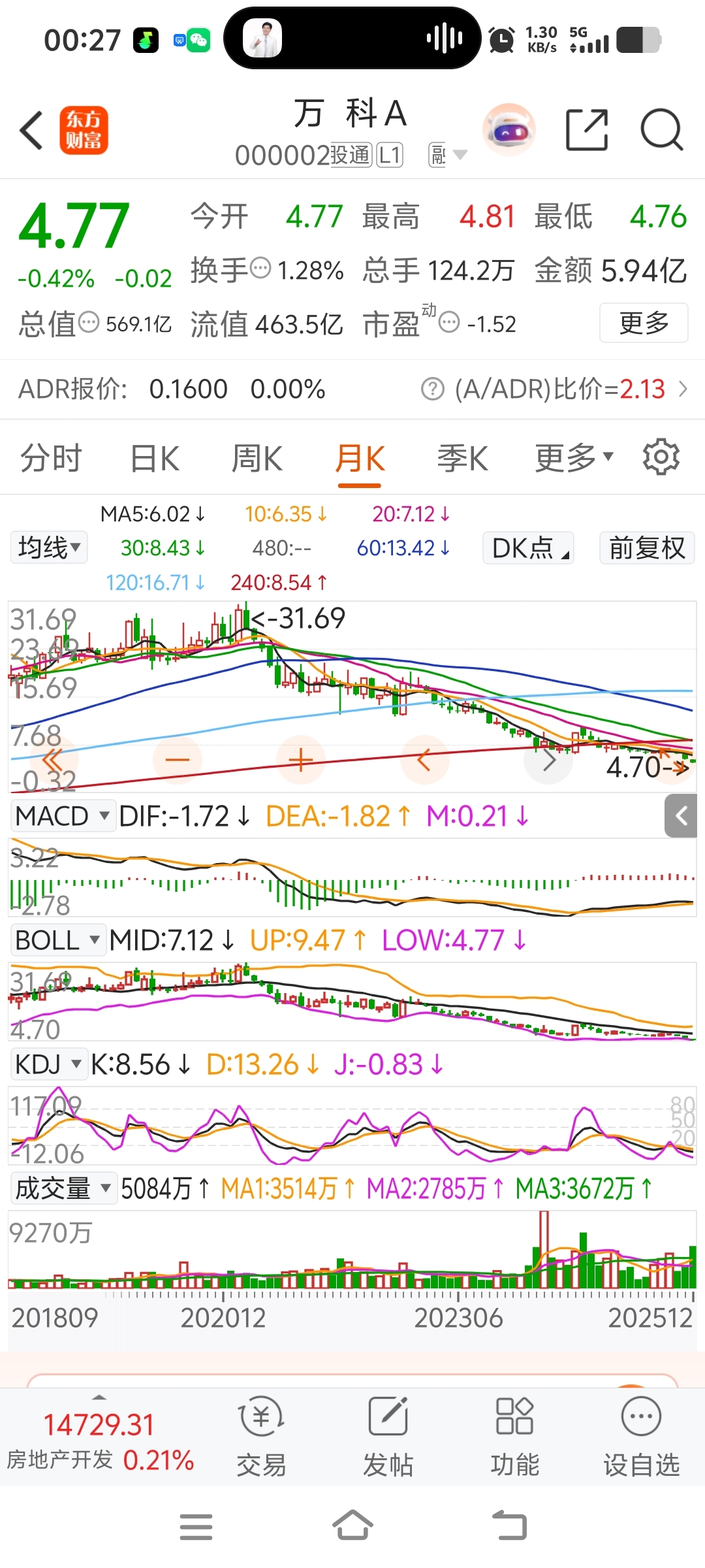 $万 科A(SZ000002)$ 虽然月线级别底背离,但散户不割就不涨,主力有的是办法让散户交出筹码