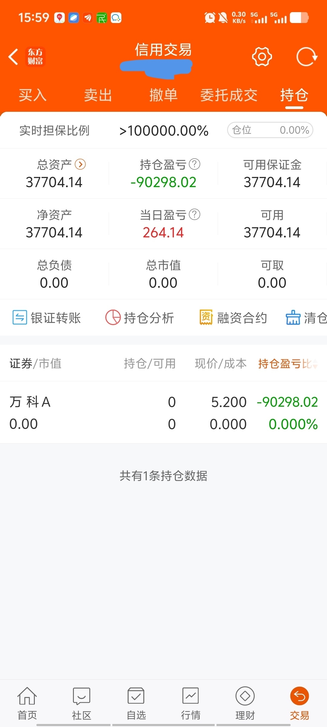 $万 科A(SZ000002)$ 万科,你让我没有爱呀,四千点的大牛市亏成这样