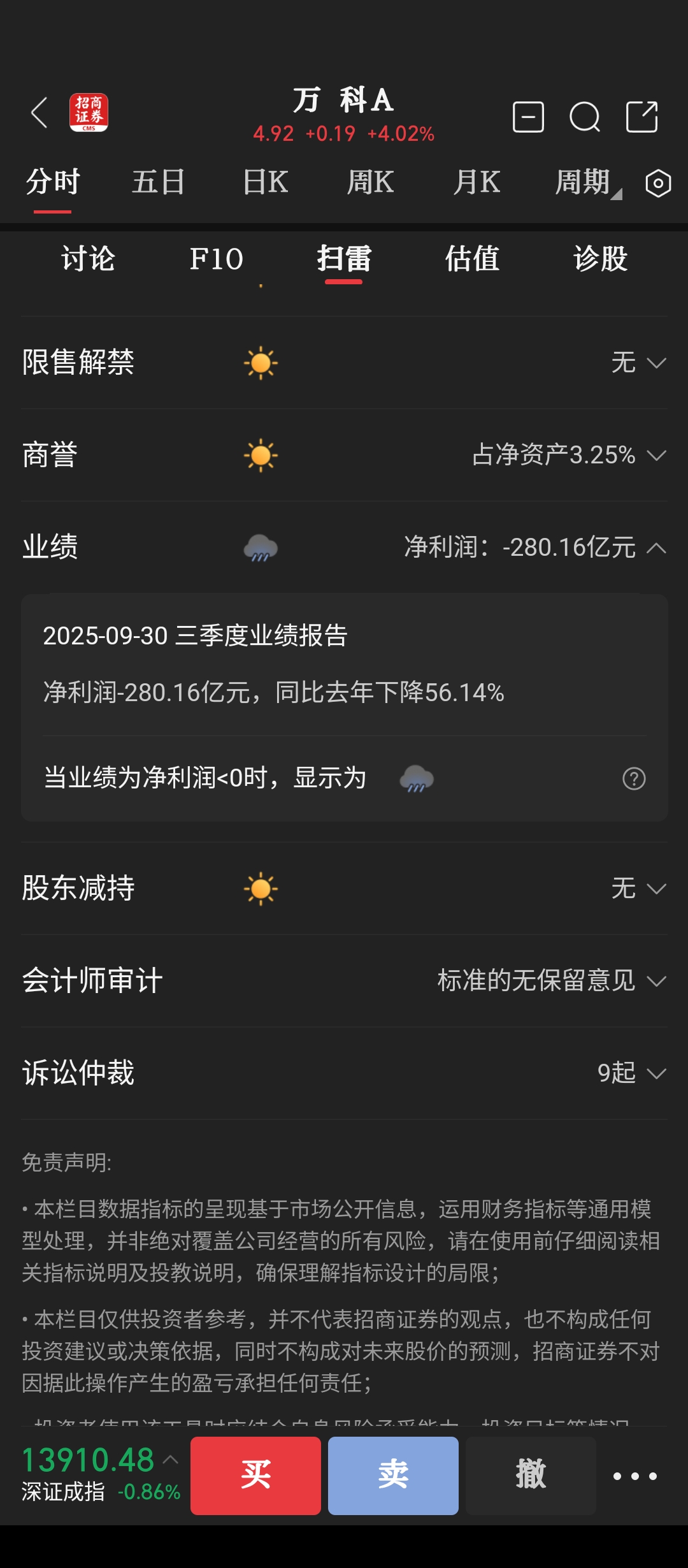 $万 科A(SZ000002)$ 亏掉市值一半