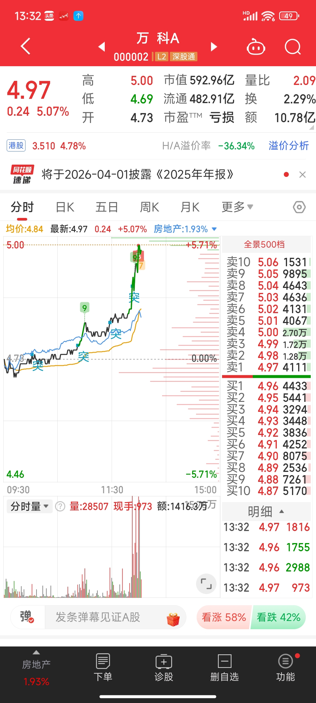 $万 科A(SZ000002)$ 精准抄顶,还按错了全仓了。。。。大声告诉我,下午能不能拉涨涨停