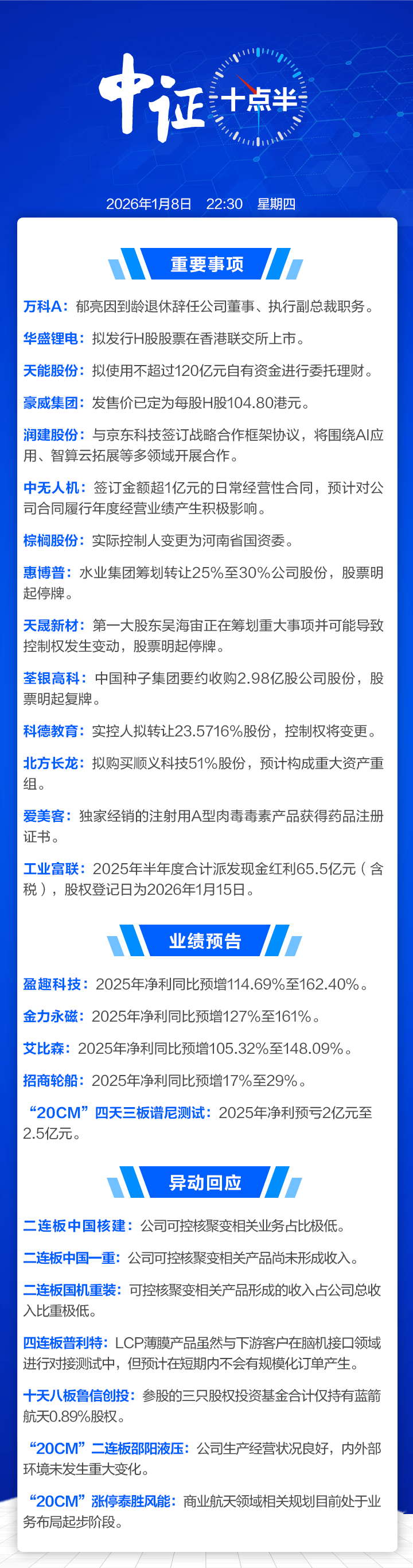 【中证十点半】万科郁亮到龄退休;北方长龙筹划重大资产重组