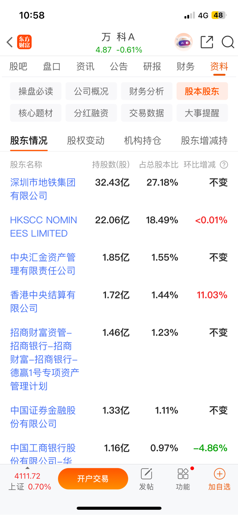 深圳地铁集团,中央汇金都在里面,还是大头,万科和深圳绑定一起,同时还注入百亿资金