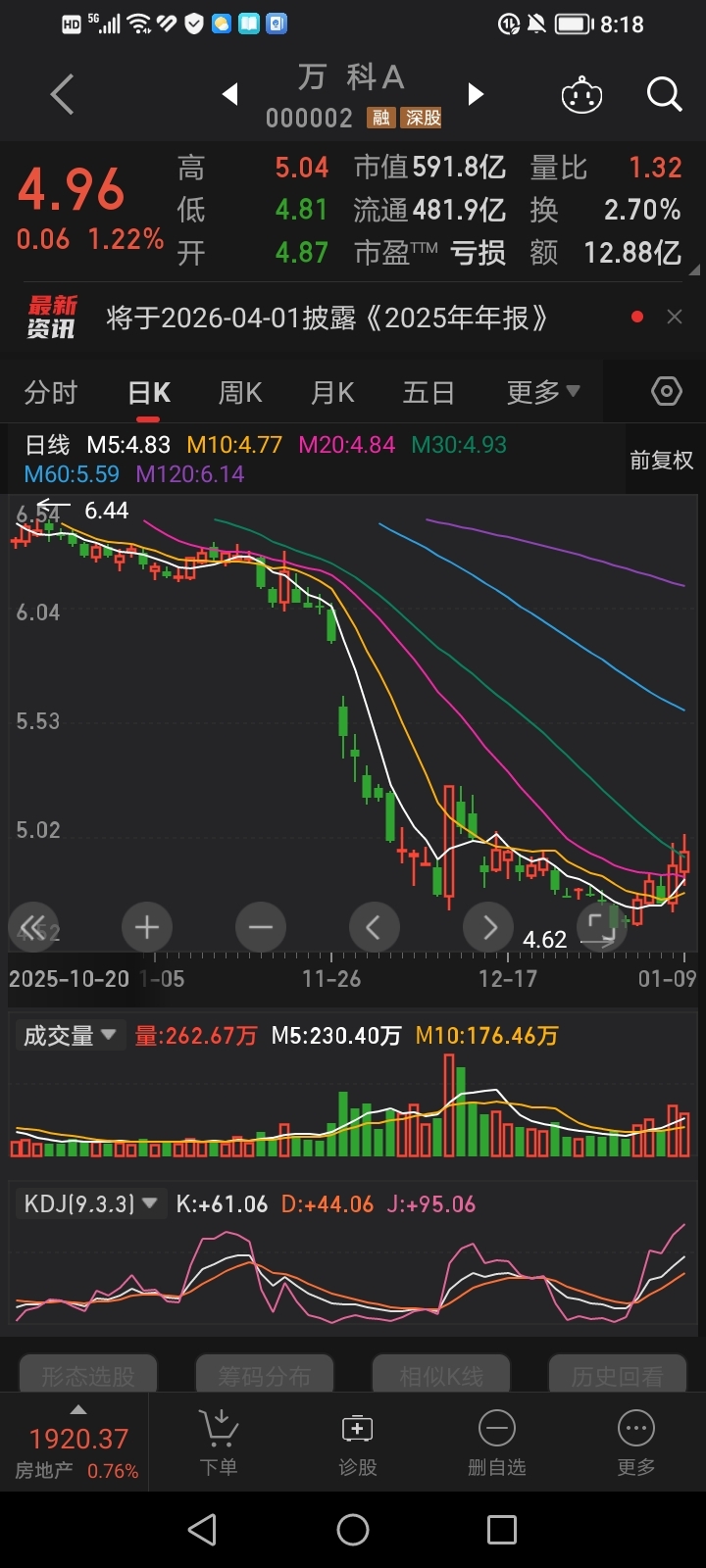 $万 科A(SZ000002)$ 等丌科涨停,大盘就见顶了。