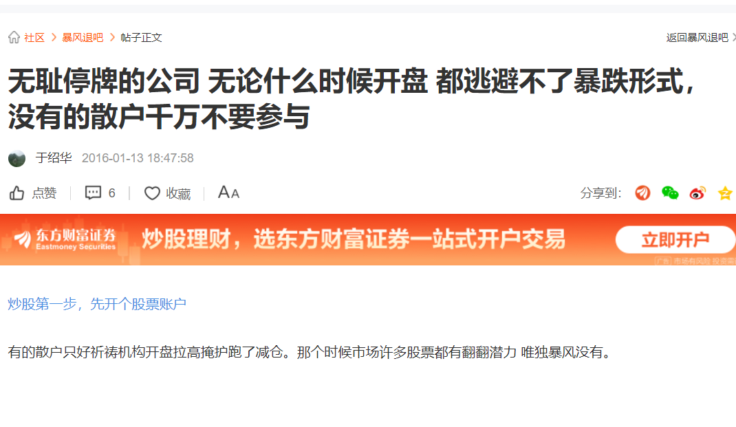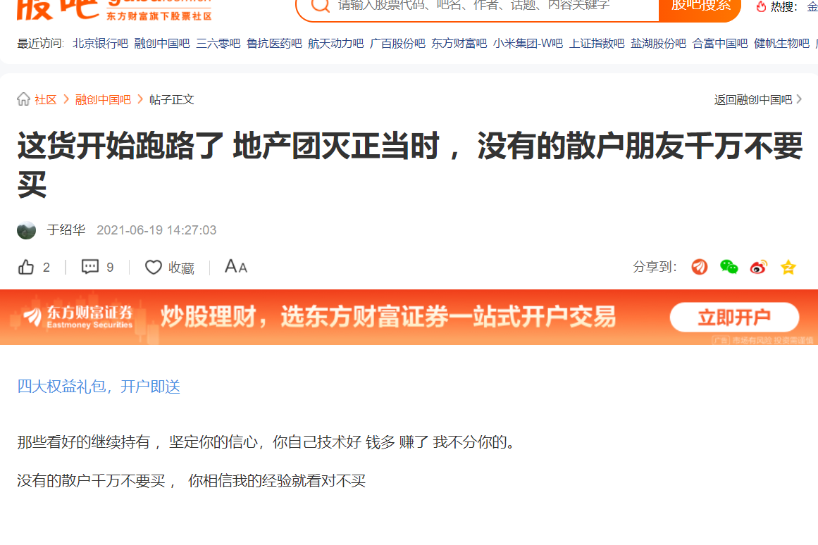 温馨提示: 1.根据《证券法》规定,禁止编造、传播虚假信息或者误导性信息,扰乱证券市场;2.用户在本社区发表的所有资料、言论等仅代表个人观点,与本网站立场无关,不对您构成任何投资建议。用户应基于自己的独立判断,自行决定证券投资并承担相应风险。《东方财富社区管理规定》