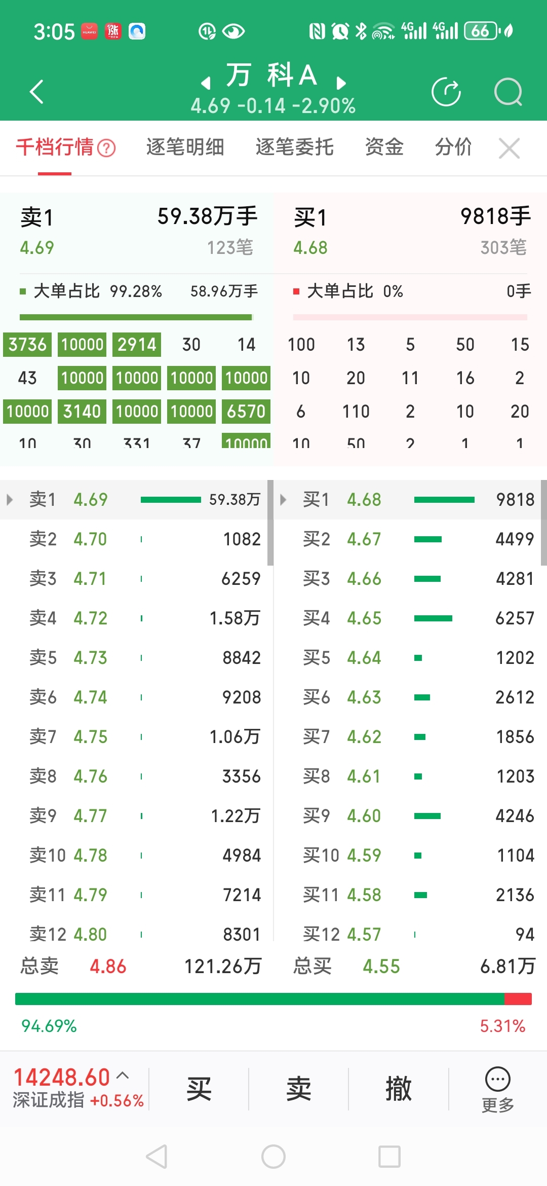 $万 科A(SZ000002)$ 4.70第一次买入,就出59万手卖单,什么情况?难道主力看到我买了吗?