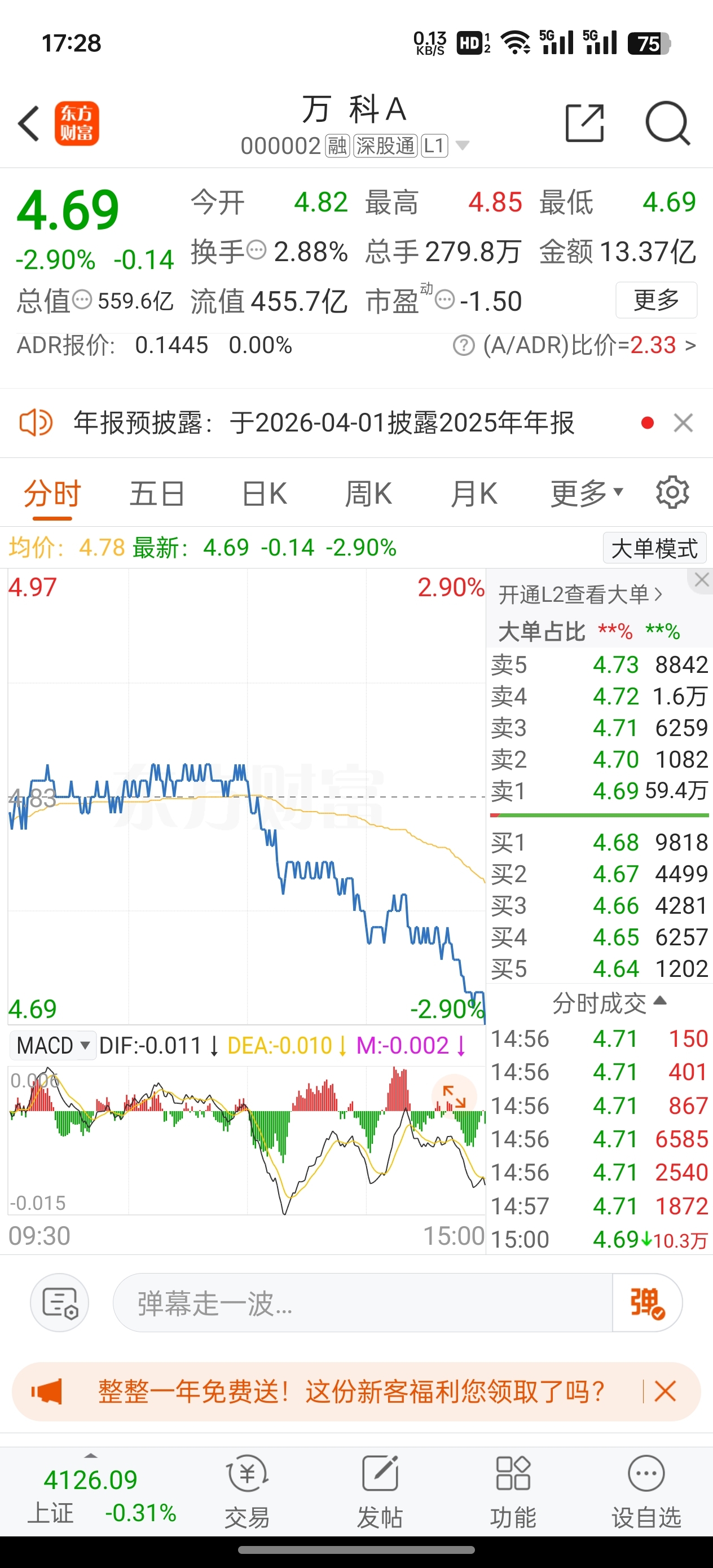 $万 科A(SZ000002)$ 不太懂这个压盘,又没涨,有啥理由压盘呢?