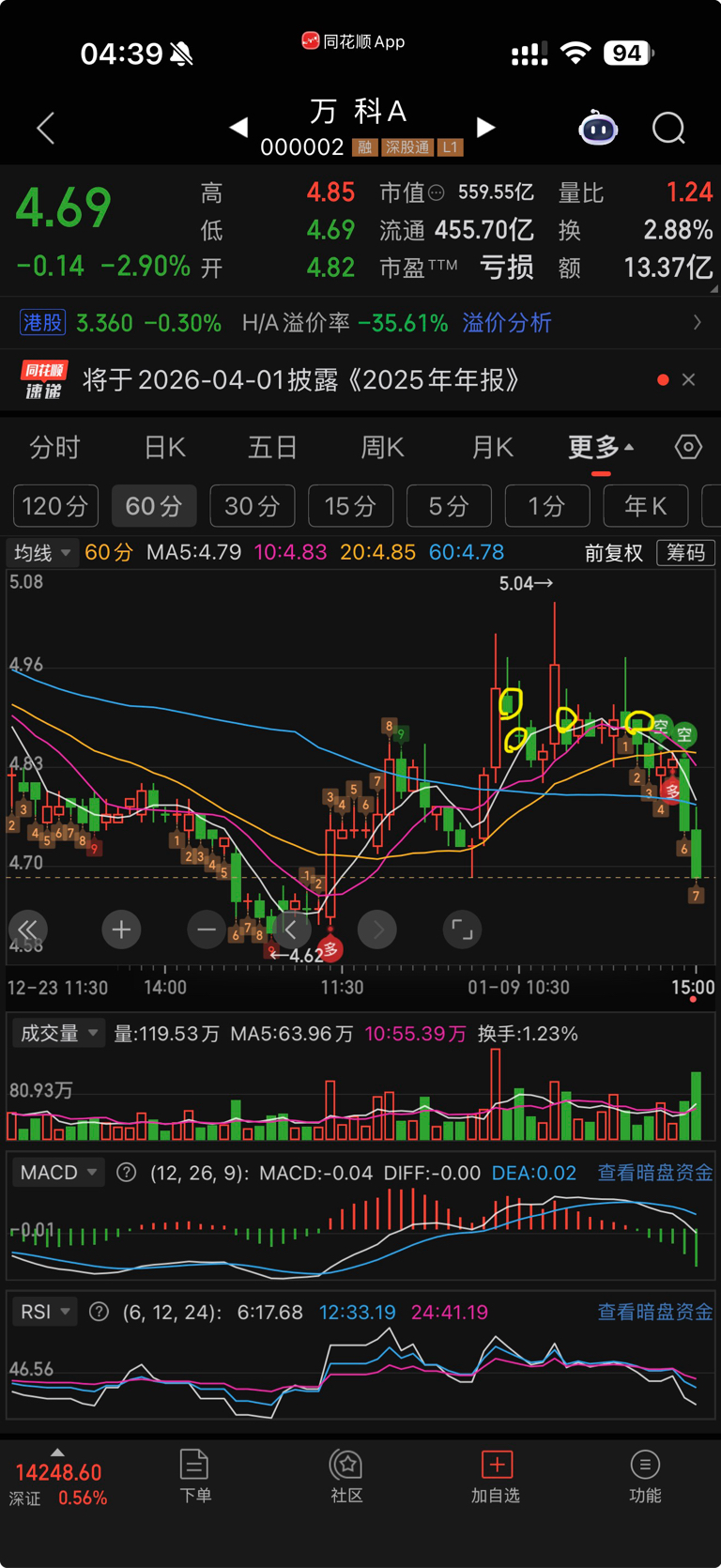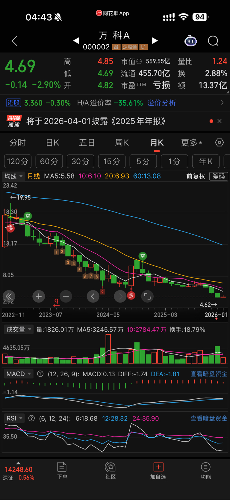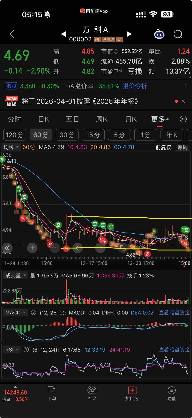 $万 科A(SZ000002)$ 看趋势,这样看462是底吗?大概率不是。破462注意止损。