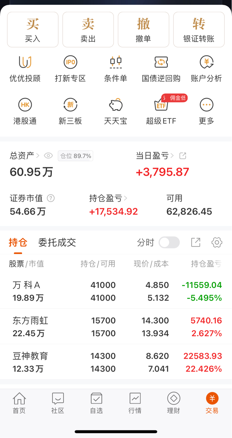 股票没交易。2025年买地产,是太早了。现在的地产板块,还是值得配置一部分的。