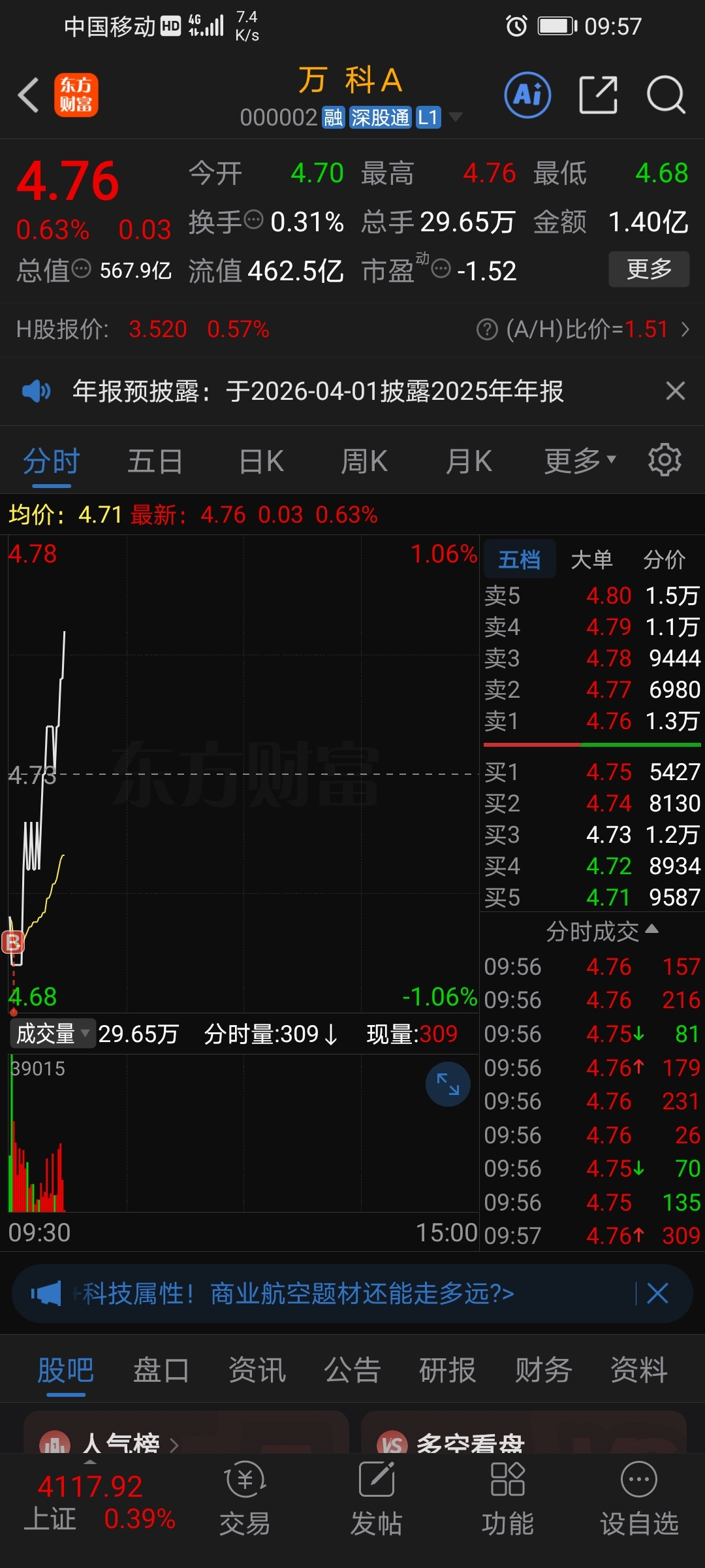 $万 科A(SZ000002)$ 是底了吗?