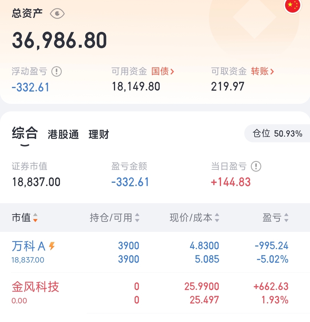 股市小学生,今天把前几天加仓的1500股卖出了,目前还亏1000元希望万科涨起来