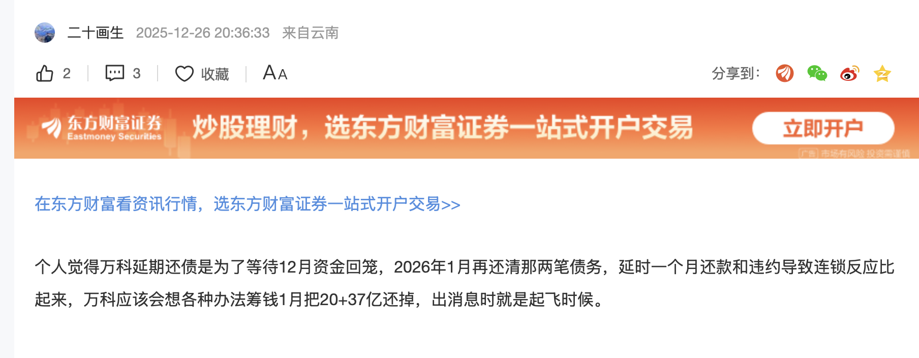 温馨提示: 1.根据《证券法》规定,禁止编造、传播虚假信息或者误导性信息,扰乱证券市场;2.用户在本社区发表的所有资料、言论等仅代表个人观点,与本网站立场无关,不对您构成任何投资建议。用户应基于自己的独立判断,自行决定证券投资并承担相应风险。《东方财富社区管理规定》
