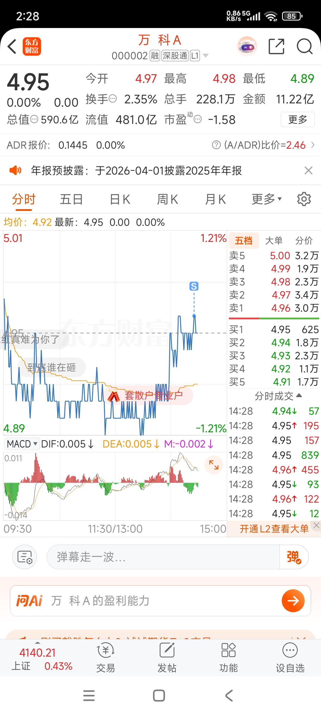 $万 科A(SZ000002)$ 走了,昨天尾盘进的,赚1分钱,刚好够手续费,浪费时间