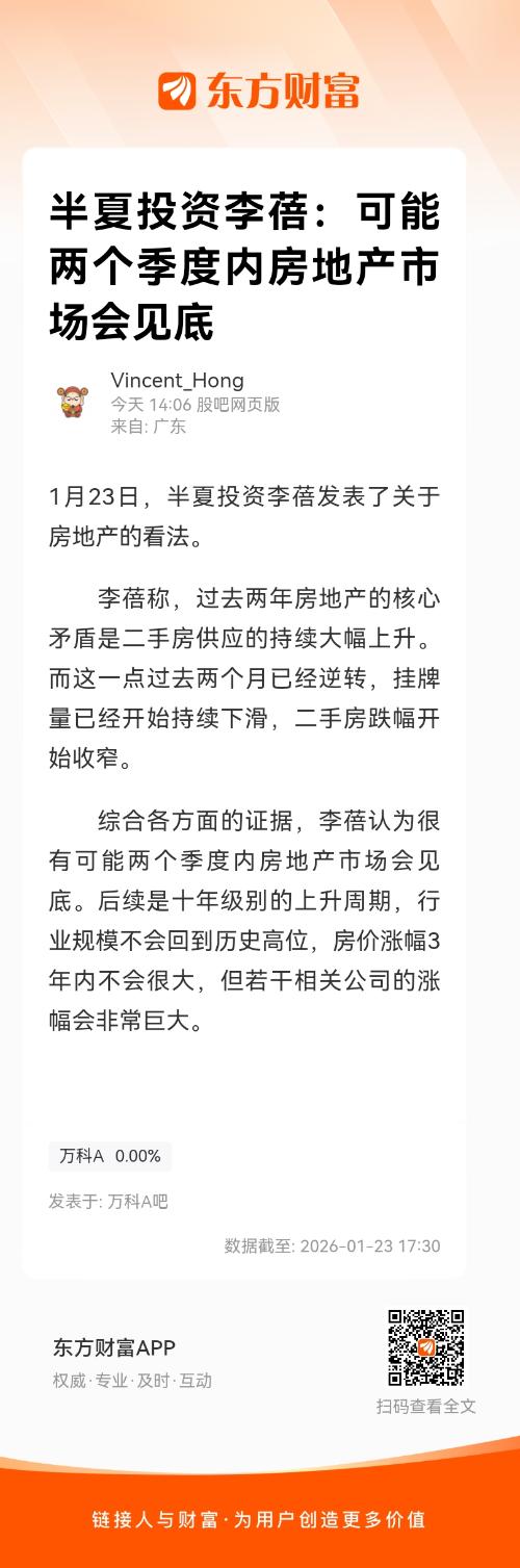 1月23日,半夏投资李蓓发表了关于房地产的看法。