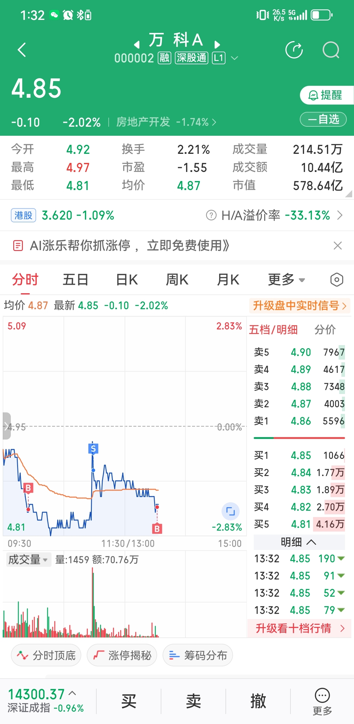 $万 科A(SZ000002)$ 起码今天是T成功了!