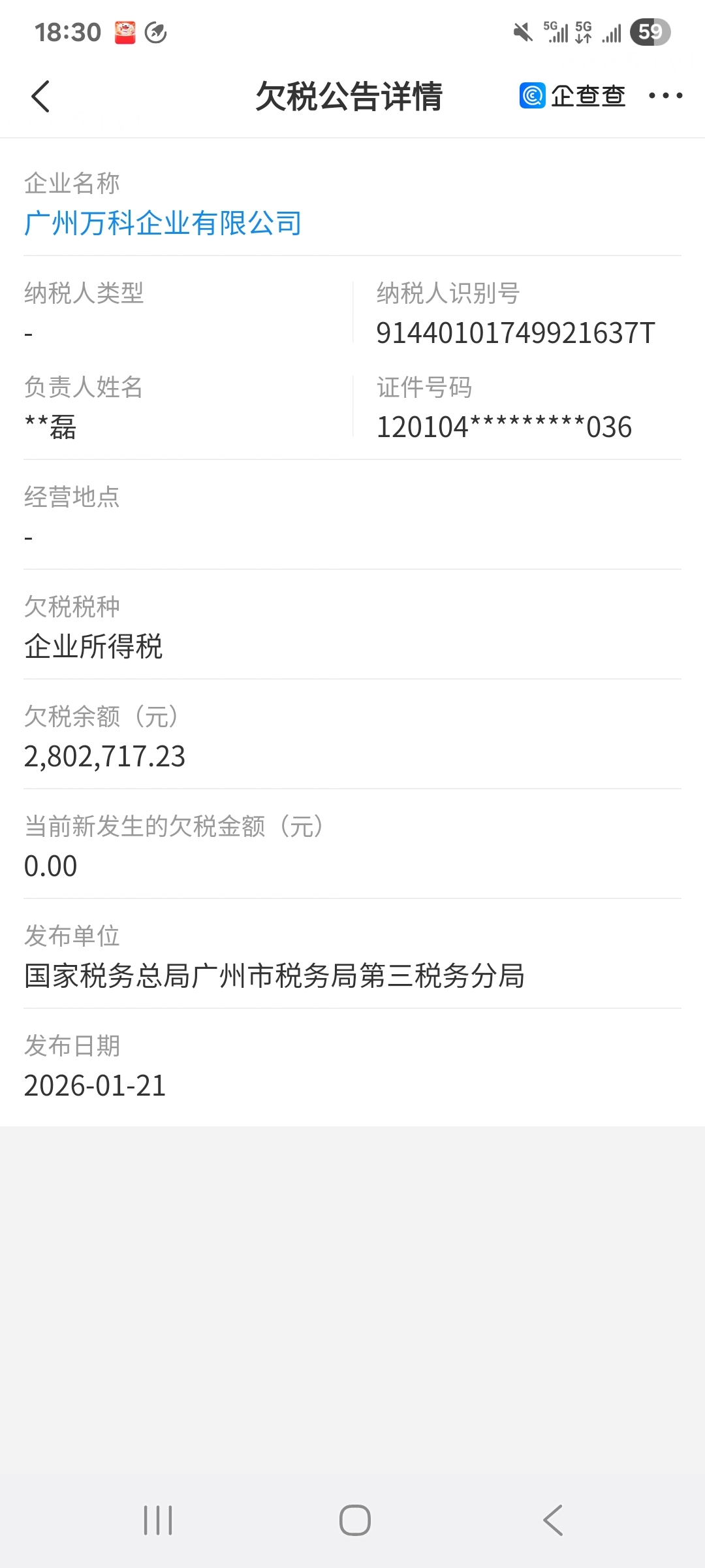 $万 科A(SZ000002)$ 万科这家子公司,是失信人了,居然还欠税