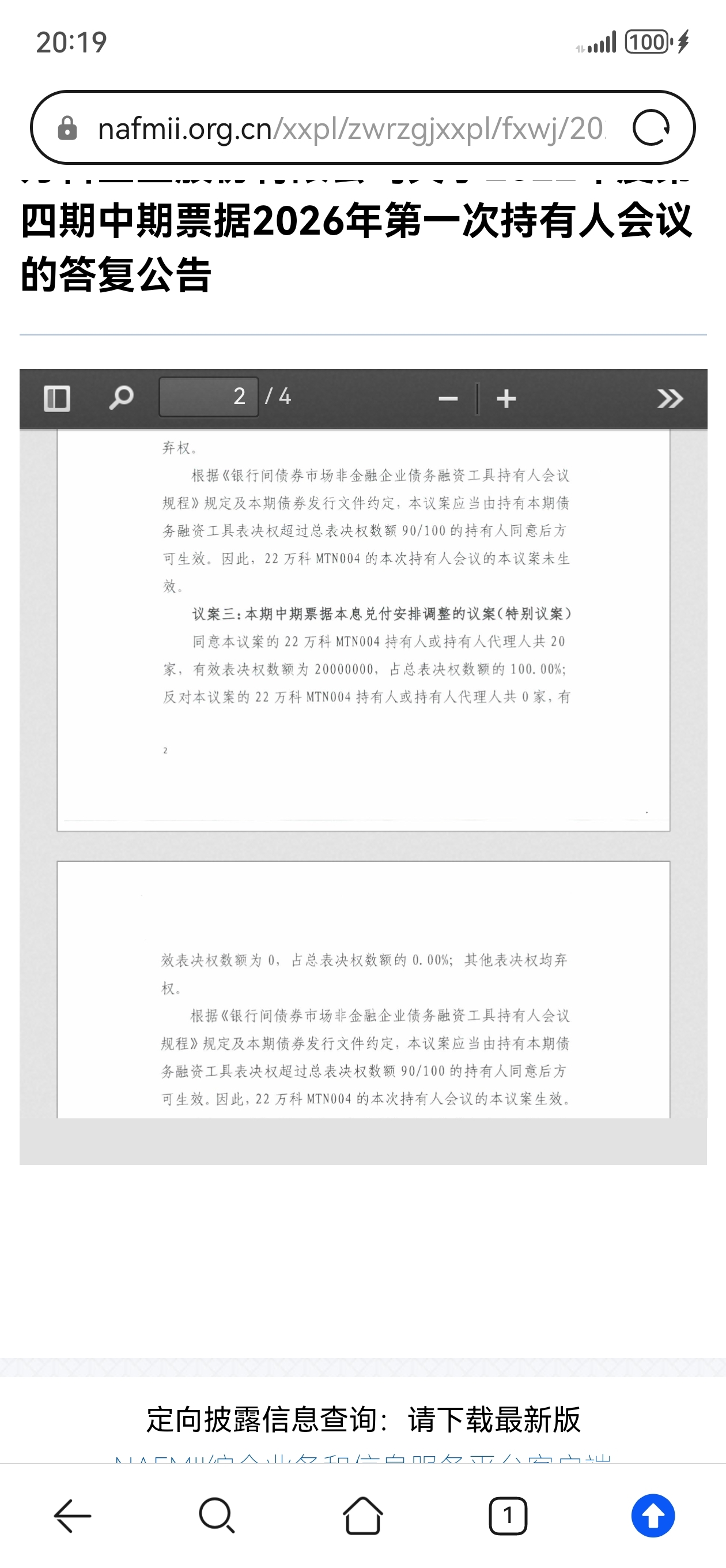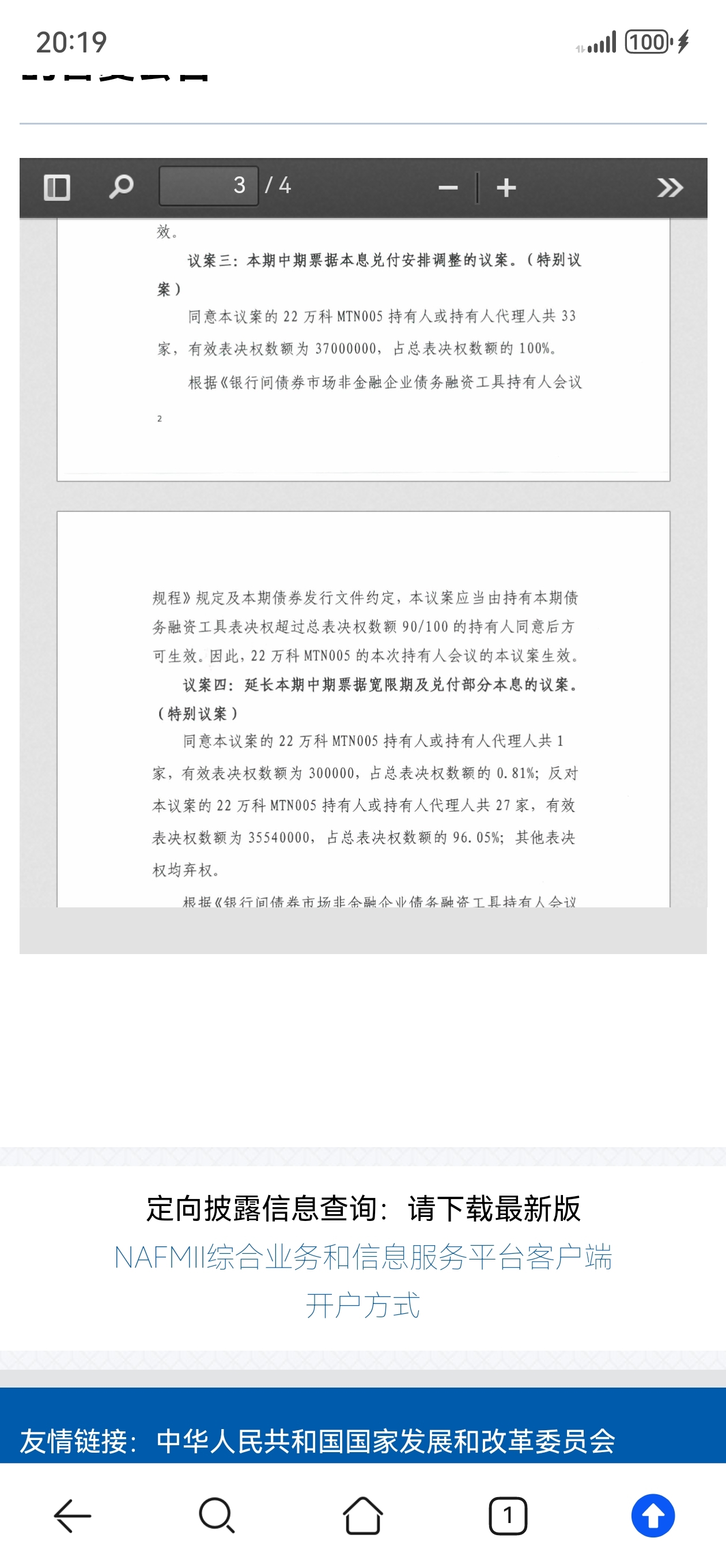 先付40%本金展期一年的方案,获得全票100%通过(57亿两笔均是)
