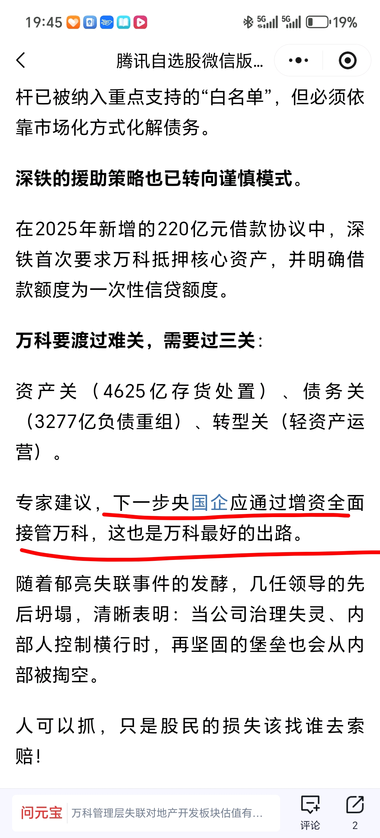 $万 科A(SZ000002)$ 万科国企增资接管,概率非常大
