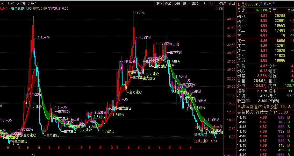 最高的时候是40多,现在才5块左右,低位价值链接,涨到20元附近万科就成功了。相