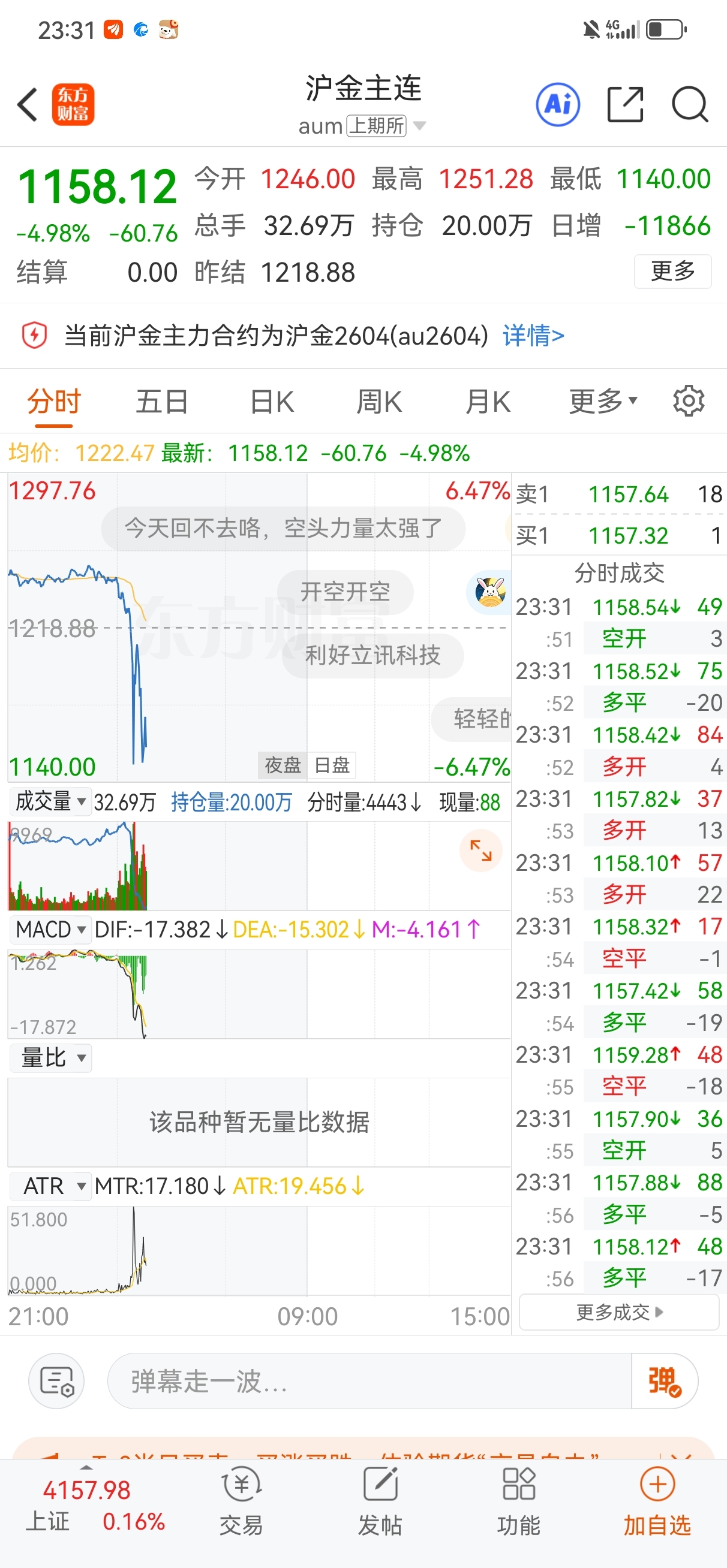 $万 科A(SZ000002)$ 明天黄金砸盘,地产护盘,石油黄金双杀,黄金爆仓太多了,瞬间砸下来高点横盘瞬间砸下6个点.浮动九个点,补保证金机会不带给时间的