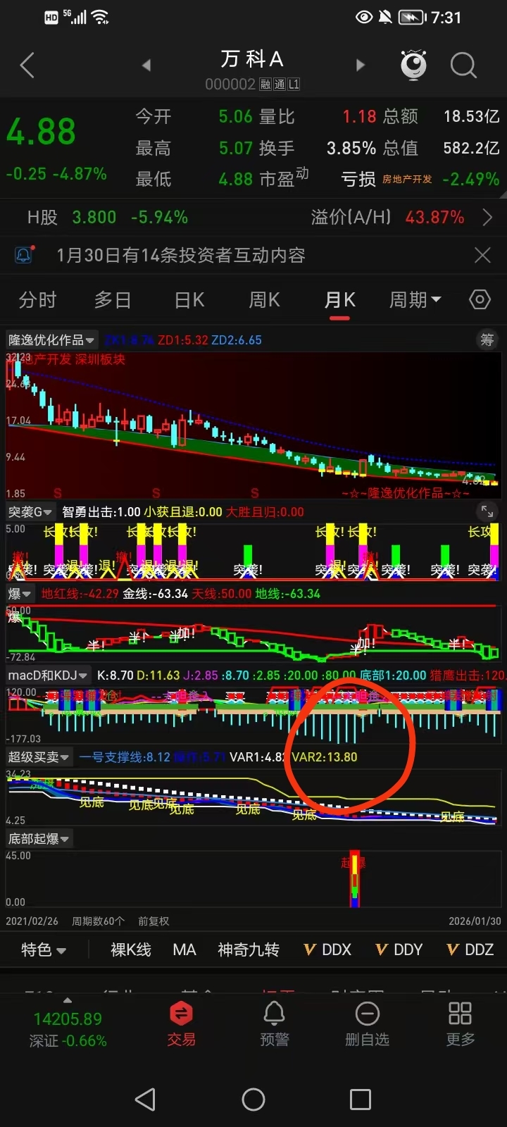 $万 科A(SZ000002)$ 软件还说月线13.8元。再大的利空股价30多,打到4元多,也消化了。