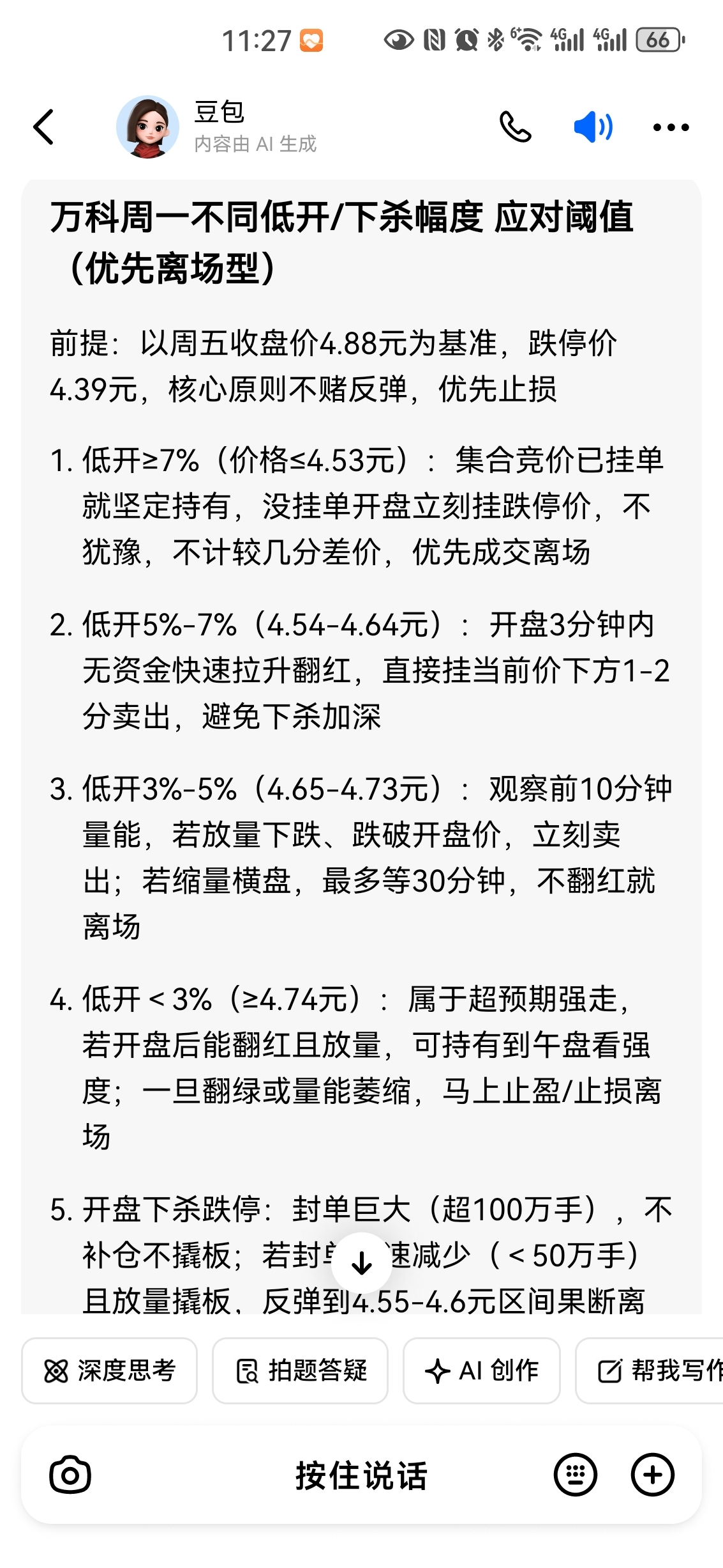 $万 科A(SZ000002)$ 这是AI智能给的建议,看来周一凶多吉少了。