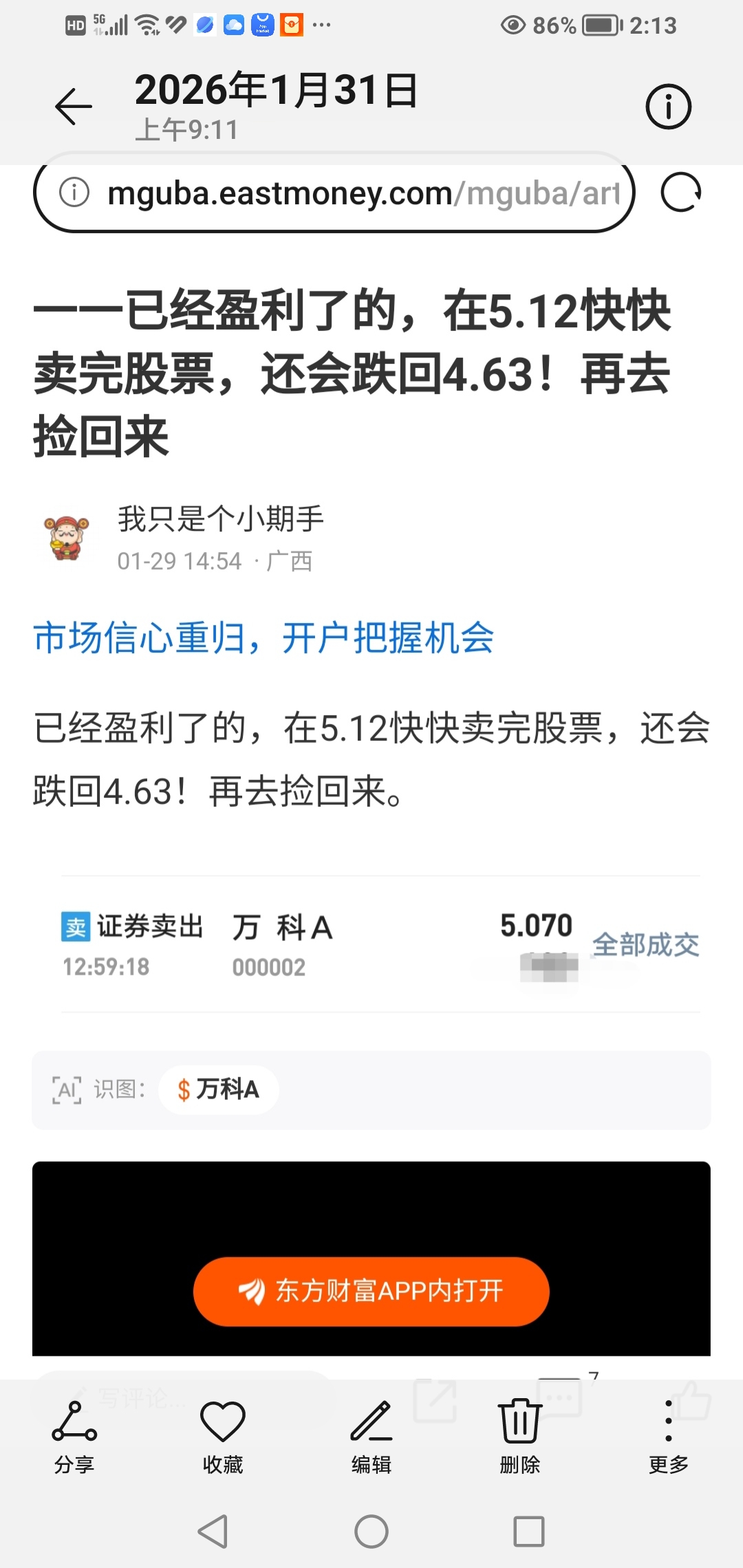 一一一一前面我在5.07卖光已经盈利的股票。!万科大概率在4.63可以接回来啰!据说年报预亏800多亿,我不知道是不是真的!但这是妥妥的砸盘利器!!