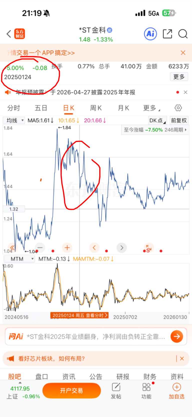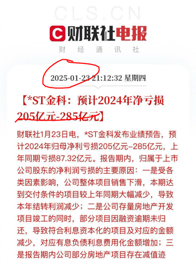 金科巨额预亏损后的市场表现。