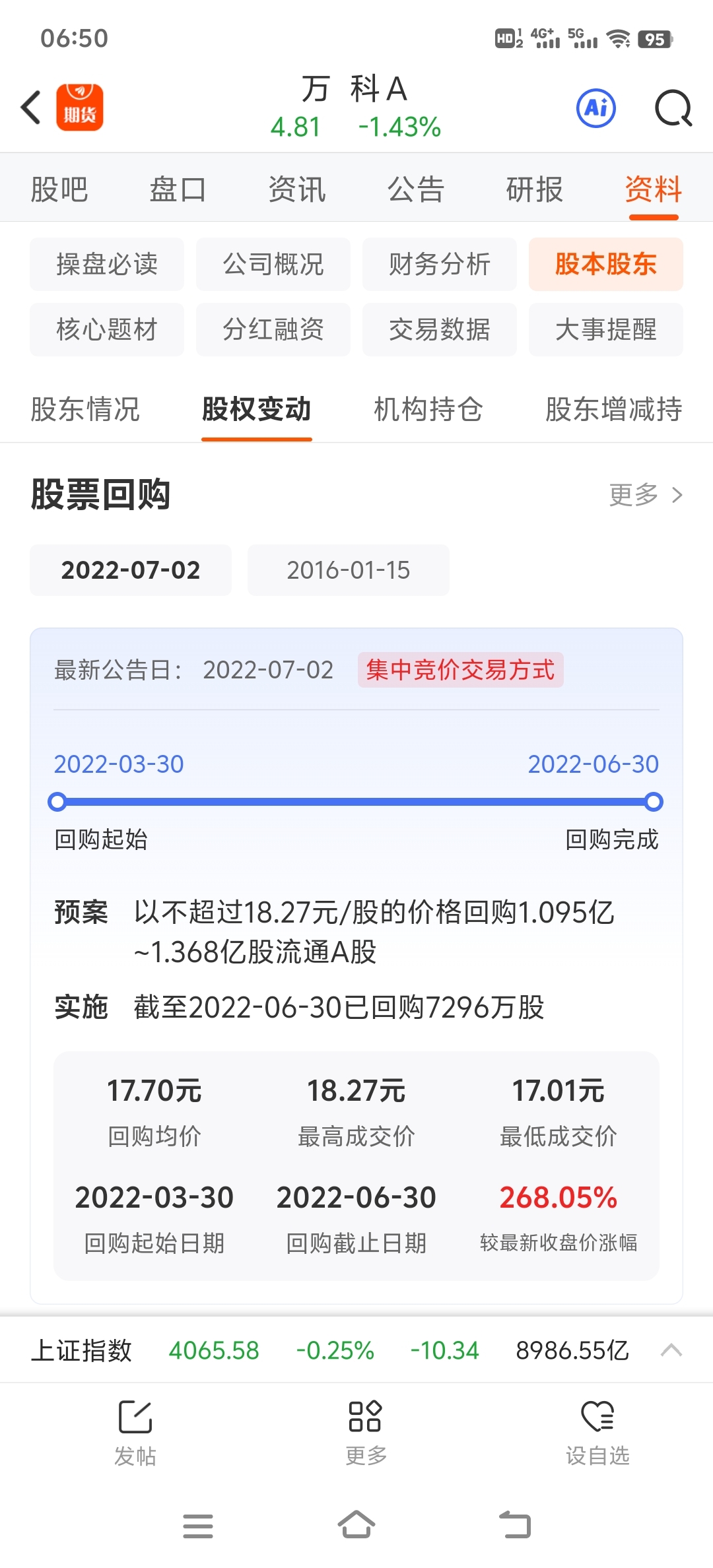 我相信这些人最终是要赚钱的,当时增持平均价在17.70,也就是说已经跌去了13元一股,现在股价只剩4块多,这些人也该出手了,向下空间几乎没有了,万科和招商保利龙头地位还是蛮稳固的,房地产行业不会消失,人也不可能露宿街头。