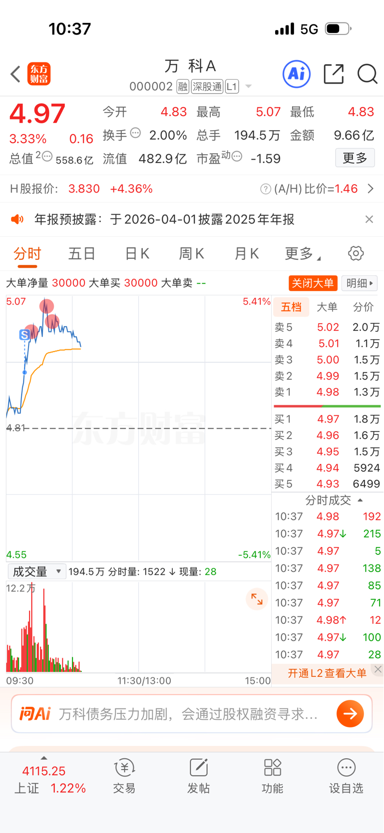 $万 科A(SZ000002)$ 卖一点你就涨